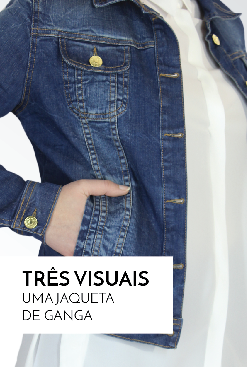Ainda a propósito do tema desta semana, os jeans, temos um grande regresso, que (re)conquistou num abrir e fechar de olhos muitas meninas. Pois é... a jaqueta de ganga! Embora usem-se oversized, os modelos cintados são mais fáceis de combinar, de forma a favorecer várias silhuetas. Por isso, se esse é o seu objectivo, na dúvida, opte por modelos mais justos. Outro truque para parecer mais magra é usar o casaco um pouco mais pequeno... Assim, quase no ponto de não o conseguir fechar. Soa ridículo? Talvez! Mas a verdade é que a mulher sofre e se tiver que passar um pouco mais de frio no Verão, qual é o problema? Sempre é mais fácil do que fazer uma dieta, certo? Outra questão é saber como usá-lo de forma mais elaborada. Todas nós sabemos como usá-lo com um vestido, calções ou sandálias baixas de praia, gritando férias para todos ouvirem, mas sabe como usá-lo de forma mais ou menos formal para um jantar, convivío ou até para o trabalho (dependendo do cargo, naturalmente)? Para que não faltem ideias, aqui ficam três sugestões!