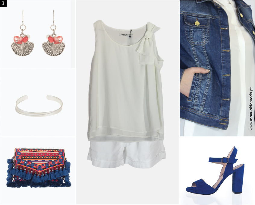 Calções de ganga são sempre uma boa escolha, mas os brancos ainda são mais versáteis, porque adaptam-se melhor, desde a situação mais informal até à mais glamorosa. Para além disso, o branco fica maravilhoso com a pele mais morena! Só tem um pequeno senão… Sujam-se com mais facilidade! Por isso, se o quer levar para férias sem pensar muito mais em partes de baixo, use-o primeiro nas saídas à noite (depois do banho, claro!!!) ou nos passeios à cidade, deixando para o fim a ida à praia. É certo que depois de os levar para a praia, estão prontos para viajar sim, mas até à máquina de lavar.