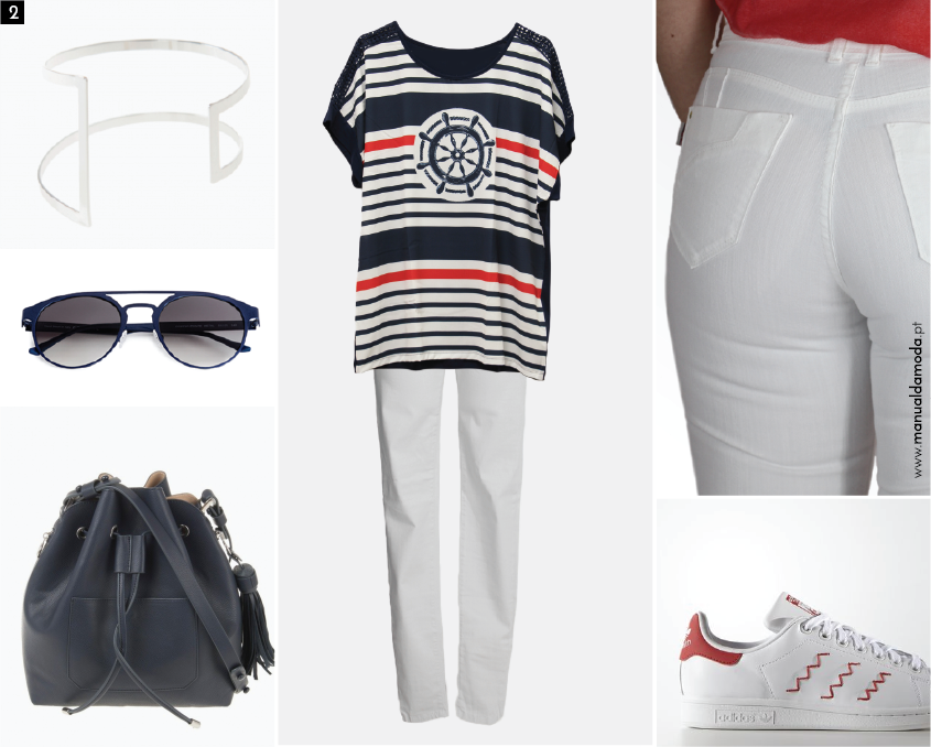 Por mais doidas que as riscas andem este ano, a verdade é que o clássico, intemporal e bom amigo navy, não falha. É a vantagem dos clássicos! Podemos, sempre, contar com eles, passem os anos que passarem, no entanto, até o navy já não é bem o que era… Surge com riscas de outras espessuras, outras estampagens e aplicações. Longe vão os tempos em que clássico significava enfadonho, desinteressante e sem estilo e esta túnica é o exemplo perfeito. Com mangas em crochet e malha em viscose, este modelo, veste até ao XXL, sem problemas. As costas numa só cor (num tom mais escuro) e o leme no peito, que corta o efeito horizontal das linhas, provam que é possível usar riscas sem alargar a silhueta. Para além disso, é excelente para usar no trabalho, num passeio ou até para ir à praia, sem perder a elegância. É só combinar a gosto!