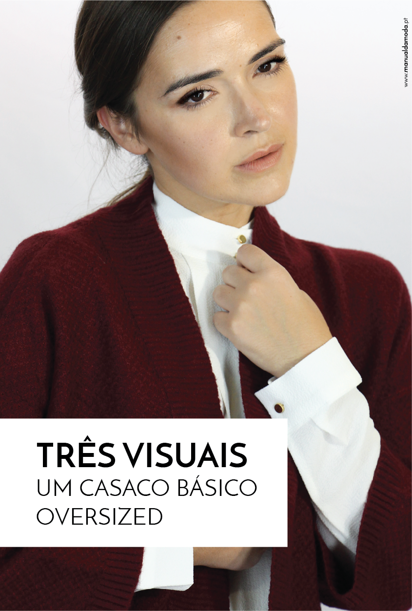 aqui em azul marinho, é uma excelente aposta! E porquê, perguntam vocês? Para além de giro e fofo, este casaco tem a particularidade de ajudar a disfarçar aquelas gordurinhas nas costas que alguns modelos mais justos e finos teimam em mostrar, porque é super pingão e solto. Quer mais? Que tal três looks com peças até ao tamanho 48 e, nalguns casos até ao 52, que pode usar já?