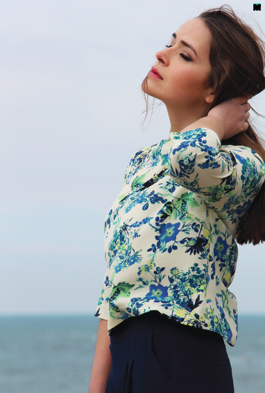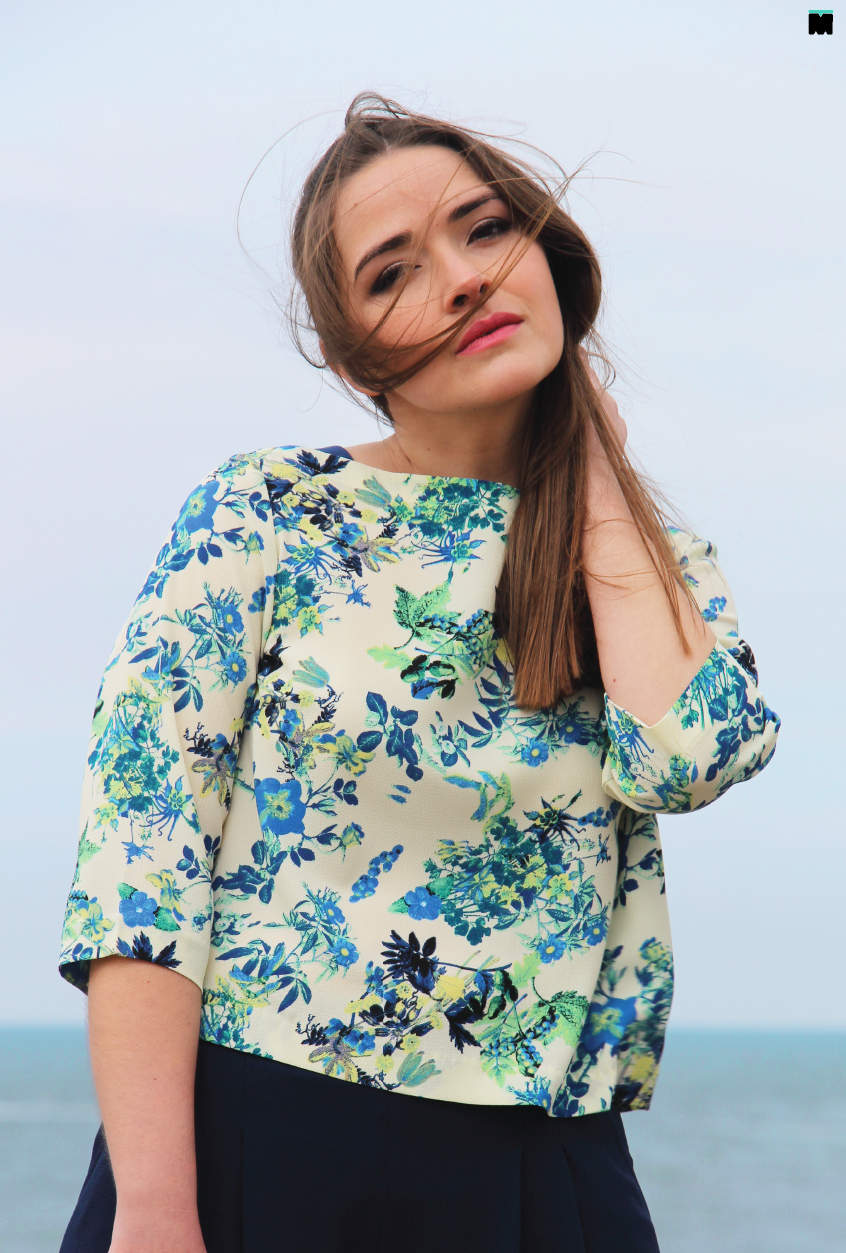 Assim que tive o privilégio (em trabalho) de ver os primeiros artigos da colecção nova da loja da minha irmã, bati de cara com esta camisola (ver aqui) e só me faltou cair redonda no chão. Vocês sabem como gosto de flores, cortes rectos e camisolas curtas, não sabem? Foi inevitável… Comecei logo a imaginar como ficaria bem com saias “pencil”, saias rodadas, culottes, bocas de sino, pantalonas e quando dei por mim já estava aos pulinhos. Sim, quando fico entusiasmada dou pulinhos. E palminhas. Posso, também, dar pequenos guinchos (mais altos do que gostaria) e, vergonhas à parte… Não me importo! Esta camisola merece isso e muito mais! E vocês merecem vê-la vestida, mesmo com o vento contra mim, porque esta já está na loja e vai esgotar num abrir e fechar de olhos. Quem avisa, amiga é!