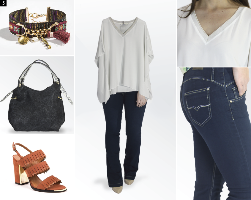 O biótipo triângulo e que já falámos aqui, caracteriza-se por ter o quadril mais largo do que os ombros. O truque é equilibrar a silhueta, apostando em modelos que disfarcem o quadril com lavagens escuras, bolsos grandes e sem detalhes na zona em questão. Os modelos mais indicados são o straight ( a direito), boot cut (que tem a boca levemente aberta) e as bocas de sino.