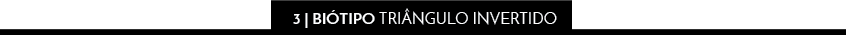 O biótipo triângulo invertido tem os ombros mais largos que os quadris e, normalmente, as pernas mais finas. O truque é usar calças de ganga que chamem a atenção para a parte de baixo. Os modelos mais indicados são as boot cut (que tem a boca levemente aberta), bocas de sino, pantalonas ou straight (a direito), e, preferencialmente, em tons claros, pois equilibram a silhueta.