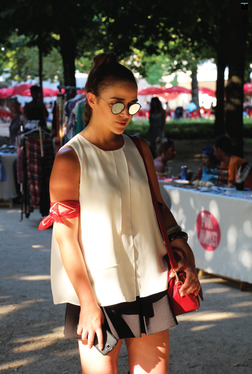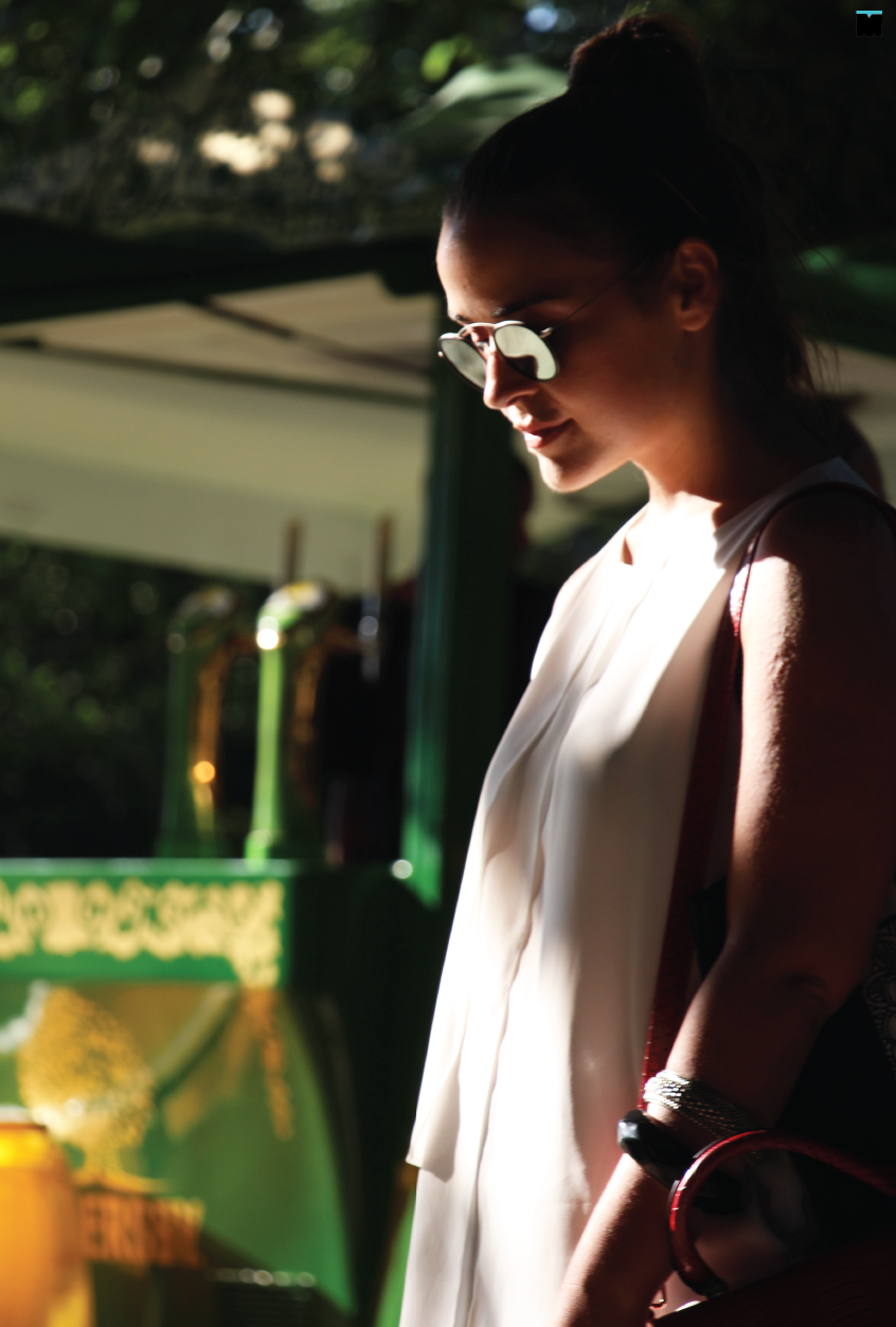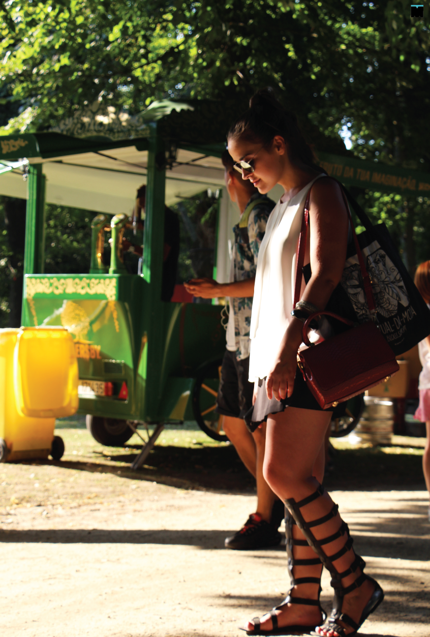 Estas férias não estão a ser fáceis... Não tenho tido sorte com a praia ou eu é que sou esquisita, não sei. Calor até está, mas o vento tirou os dias para me perseguir, juro-vos! A solução tem sido ser o mais criativa possível e procurar outras coisas para fazer como passeios de bicicleta pelas marginais do Porto, Gaia e Matosinhos, picnics e eventos gratuitos onde haja muita música, comida, bebida e relax, como neste Domingo, no Palácio de Cristal. Ora bem, já me mentalizei que não vou ficar morenaça, mas confesso que não me importo, porque estou a gostar disto. Os meus dias são todos diferentes, sem rotinas, planos ou fretes. Acordamos, pensamos no que vamos fazer, tiramos ideias para o ar e aquela que nos entusiasmar mais é a eleita. Só não vale ficar em casa. Pessoalmente, adorei o Domingo passado. Estava um calor intenso e é verdade que podia ter ido, finalmente, para a praia, mas ainda bem que não fui. Levei a toalha na mesma, estendi na relva e usufruí de uma tarde super agradável, descontraída e animada. Que dia bom! Quanto ao visual... Escolhi este top que a minha irmã mostrou aqui que é óptimo para disfarçar os quilinhos que estou a engordar nestas férias, para além de ser extremamente fresco. Perfeito!