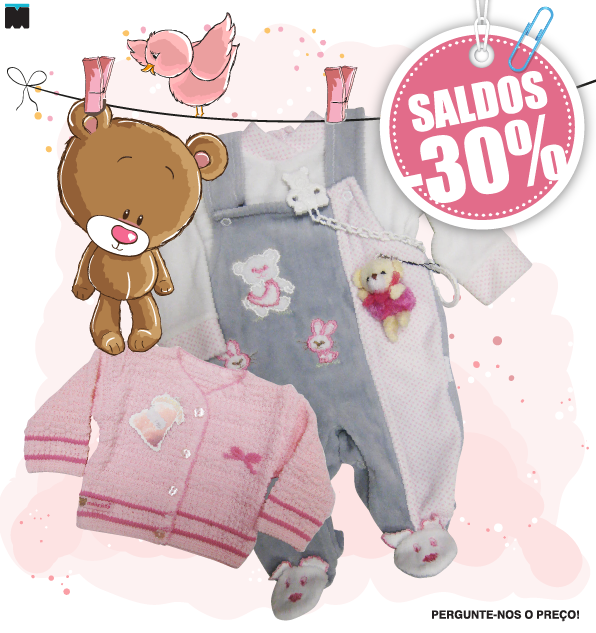 Hoje dedicamos os saldos aos mais pequenos de todos, àqueles que nos enchem a alma de ternura e a vida de alegria, mesmo já na barriga. Se está de esperanças ou conhece alguém que está, aproveite para fazer o enxoval na loja Manual da Moda e guardar algum dinheiro para as fraldas (que bem vai precisar!). Digam lá, se não temos o post mais fofinho da blogosfera?!?