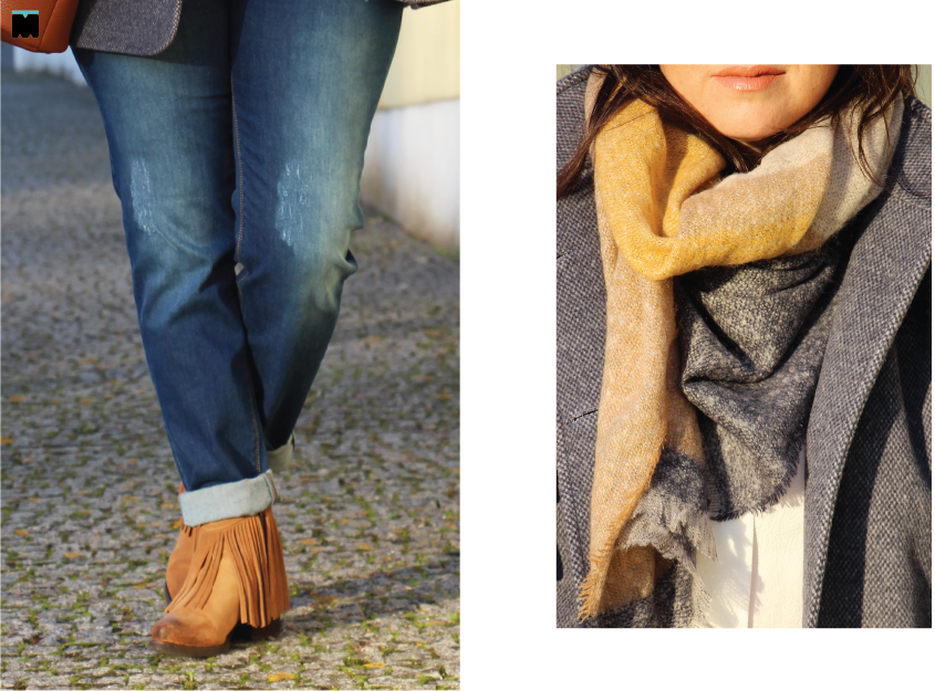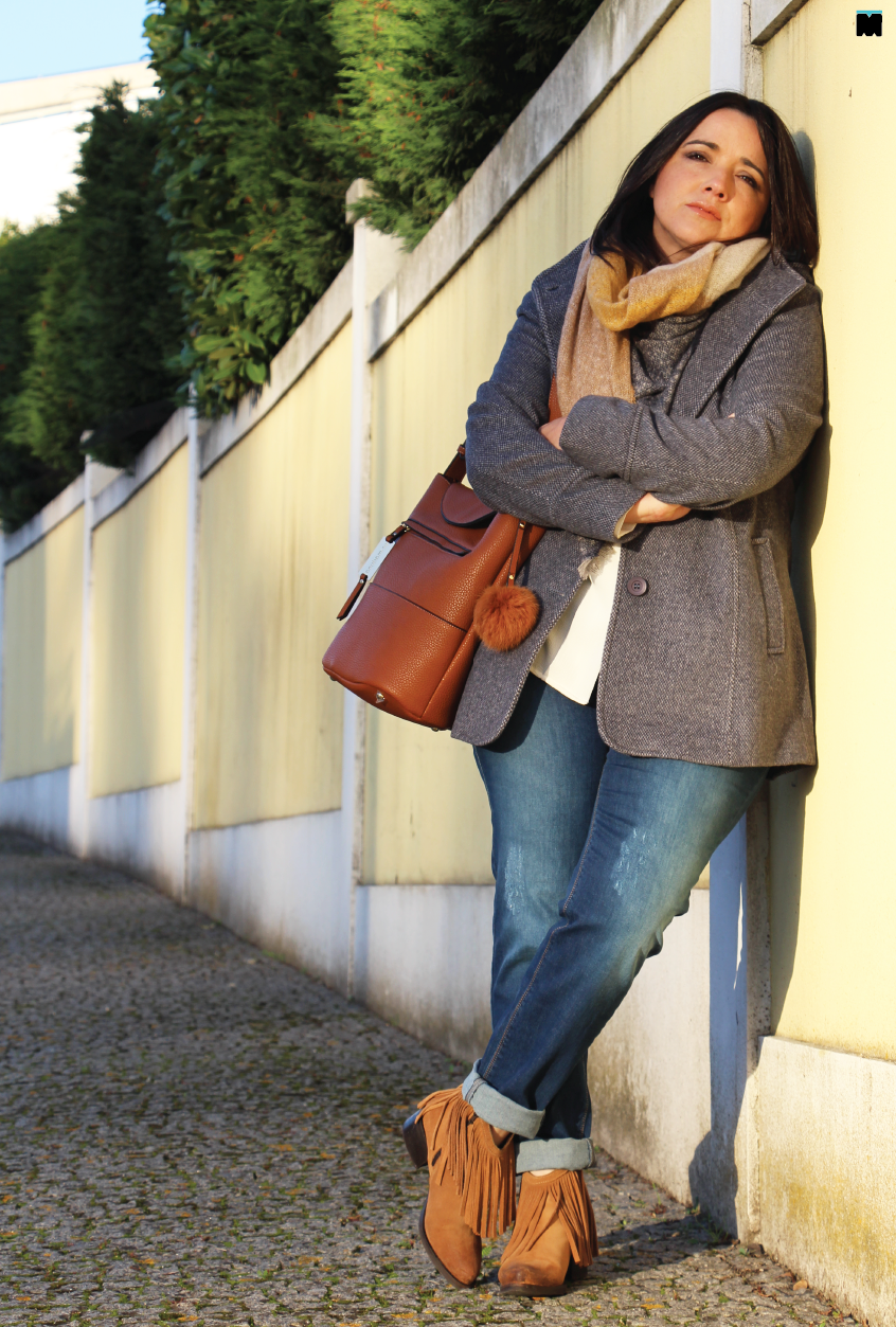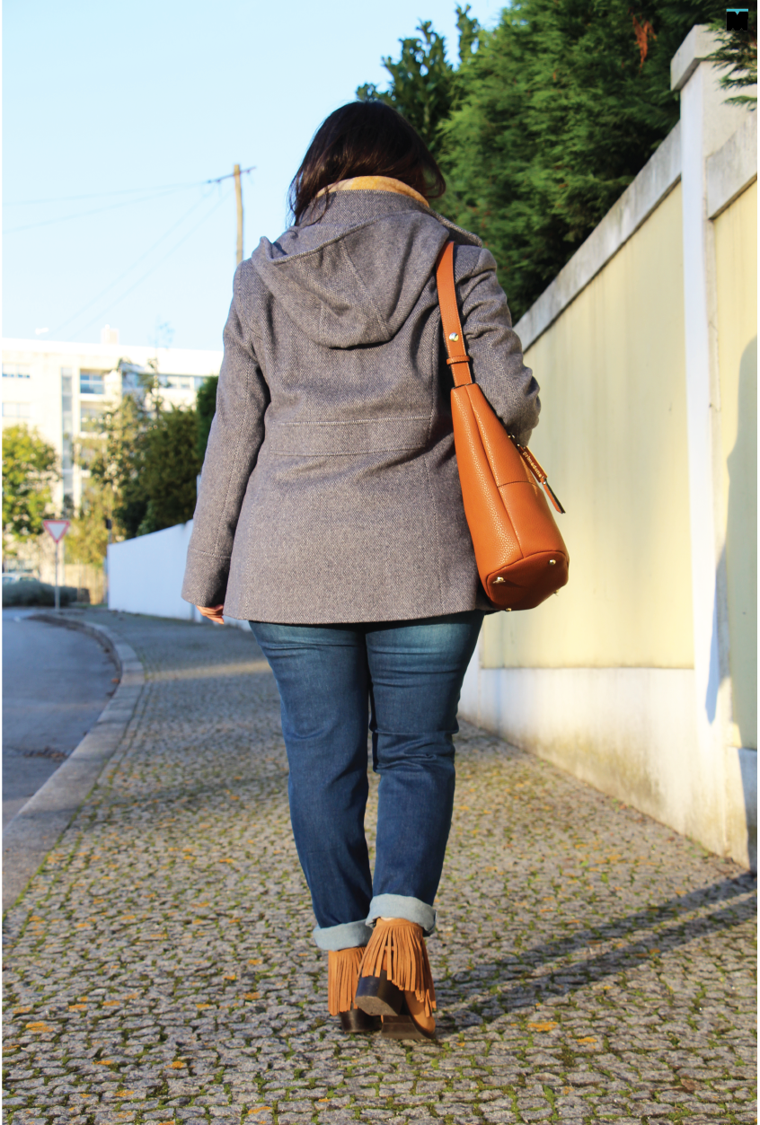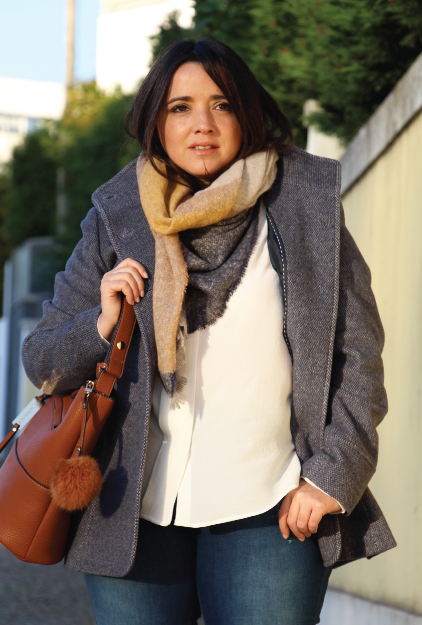 Este casaco que vos mostrei aqui, encheu-me as medidas por completo! Perfeito! Fica tão bem, mas tão bem, que até me faz mais magra. Coisa que agradeço no Inverno, quando me sinto um chouriço a maior parte dos dias. O problema, lá está, foi escolher a cor. Eu preciso de um preto (urgentemente!), mas adorei o vermelho. É irreverente e combina bem com o estilo mais casual do casaco. Depois experimentei este que vos trago hoje... Ai, o que fui eu fazer? Embora não dê para perceber este modelo tem um ponto em V, na cor azul. É um padrão super subtil e elegante, que fica maravilhoso para combinar com cachecóis em xadrez, jeans, camisas brancas, botins em camurça... Enfim! Perfeito para fugir ao preto! Este ano, vou ficar depenada, mas a verdade é que, nem sempre encontro casacos que me fiquem tão bem... Ai, ai, ai!