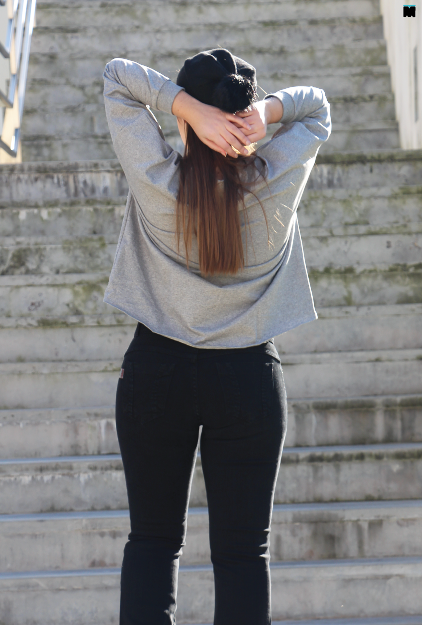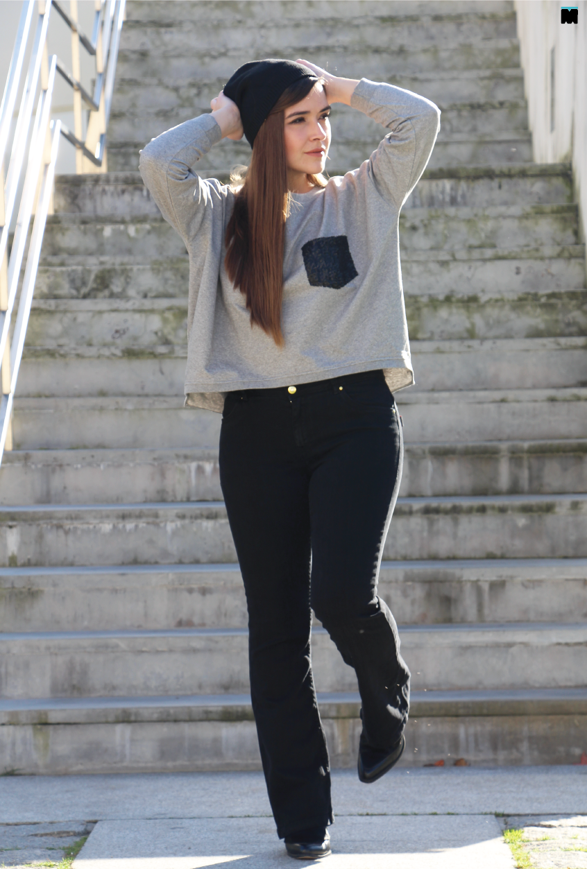 Eu acho que não vos contei, mas eu tirei uns dias de férias, entre o Natal e a passagem de ano. Estava mesmo a precisar de descansar. Parar. Fazer nada! E que bem que soube... Vestir roupa larga, malhas confortáveis, sair do registo certinho e arranjadinho do trabalho e experimentar novas misturas e estilos. Esta camisola cinzenta é tudo o que eu poderia desejar para estes dias. Adoro o facto de dar a ideia de que cortei a sweat XL do namorado e que colei um bolso de lantejoulas, só porque sim. Faz-me lembrar os tempos em que alterava a minha própria roupa e deu-me vontade de fazer isso de novo até porque este ano as ruas estão recheadas com este tipo de inspiração. E, de repente, as minhas férias transformaram-se em páginas brancas cheias de ideias... Tudo por causa de uma camisola! Quem disse que a cor cinzenta não pode ser divertida?