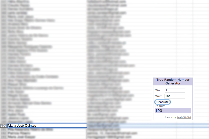 Parabéns, Maria José Quintas! Será contactada em breve, por e-mail, para acertarmos os pormenores da entrega do seu prémio.