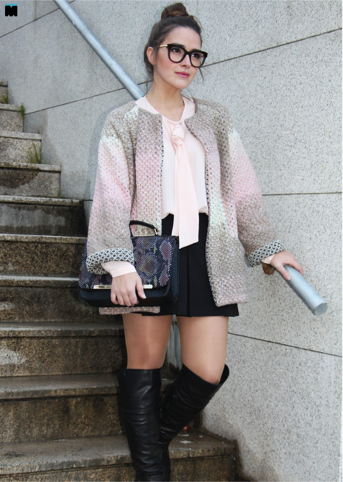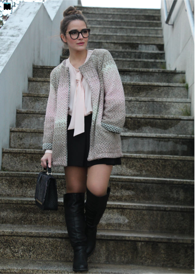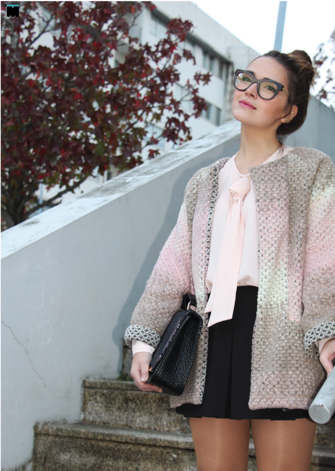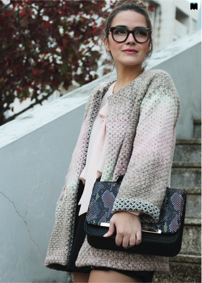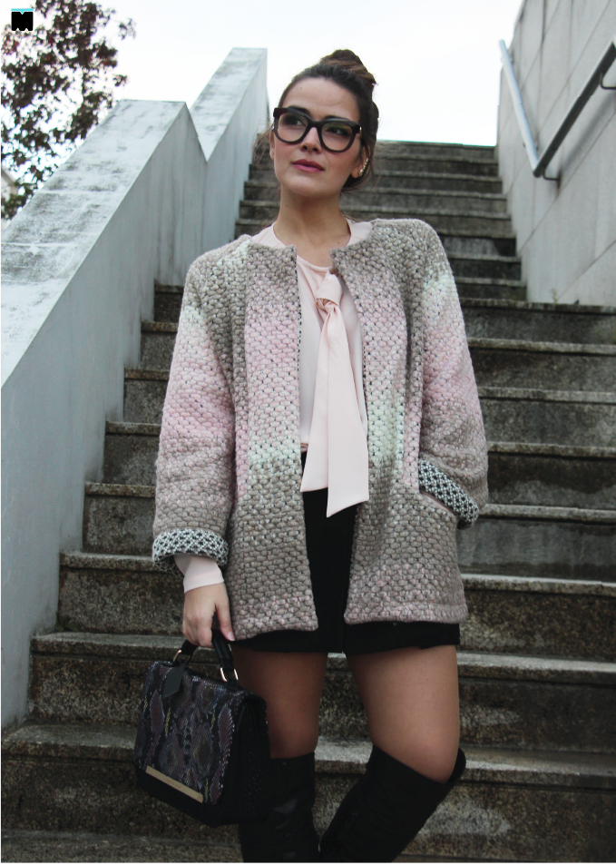 Esta semana falamos de novas malhas e texturas que não são o que parecem. Hoje, por exemplo, trago-vos um casaco que à primeira vista até parece em fazenda, mas não é! É verdade, este casaco da Marjocri que é só a coisa mais fofa e quente que existe, é, na realidade, em malha! É mais do que perfeito para usar no meu local de trabalho que, como já vos disse, mais parece que fica no Pólo Norte! Nem com o ar condicionado me safo... Regra geral, até chego ao escritório cheia de coragem, tomo cafézinho, tiro o casaco de fazenda e passado meia hora (meia hora basta!), rendo-me e visto-o de novo! Conclusão: chego ao final dia com um peso nos ombros que nem é bom. Nem é mau. É péssimo! Posso dizer-vos que este casaco é tão leve, mas tão leve e confortável, que sinto que estou de robe no trabalho. E, se vos dissesse que, foi exactamente isso que o meu namorado me disse assim que me viu com ele vestido, de manhã... "Vais de robe para o trabalho?" Já nem ligo! Ele goza-me todos os dias, eu rio-me e entro na brincadeira! "Oh! Pensei que não se notasse...", digo. Queria ele ter um casaquinho tão bom como este! Invejoso!