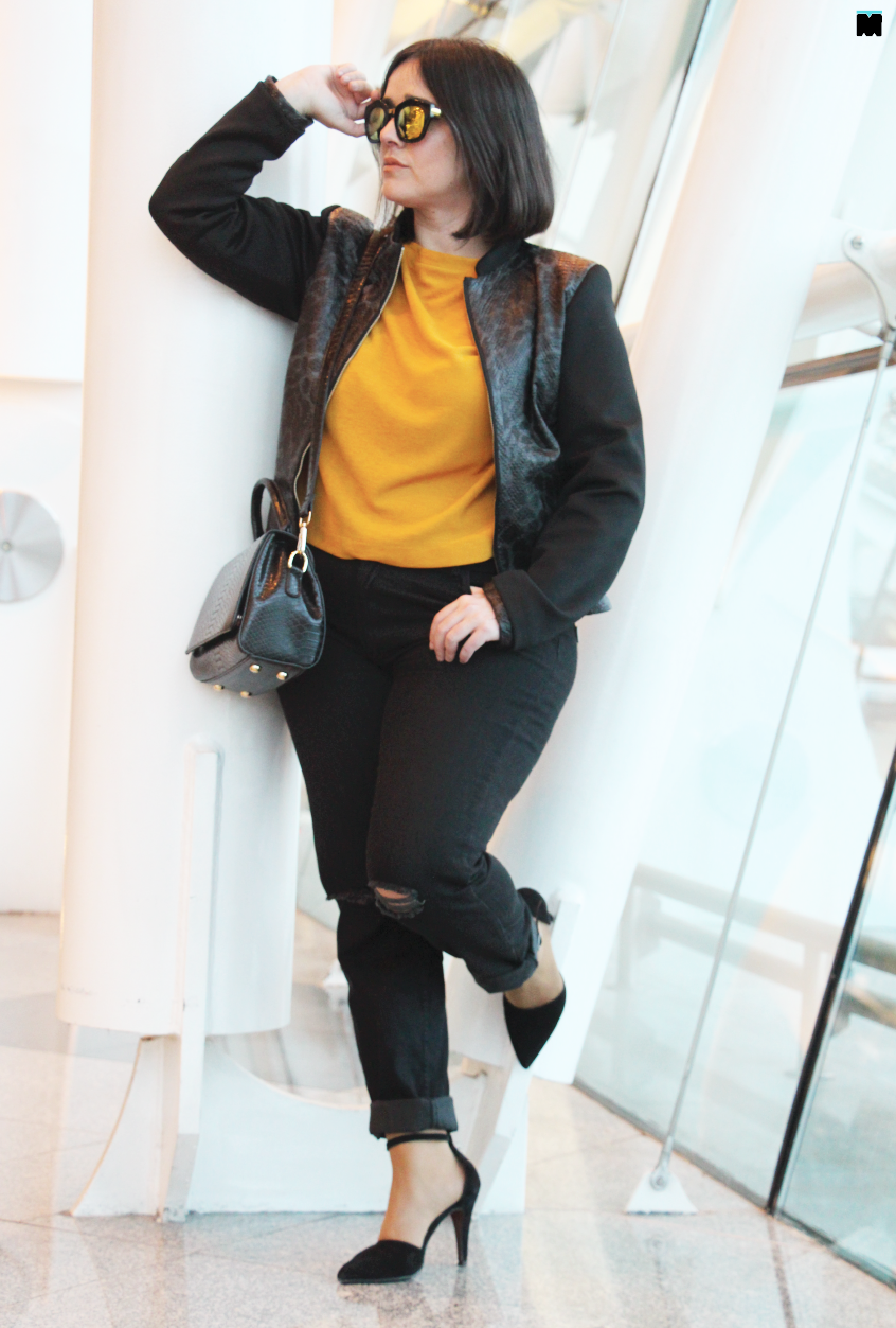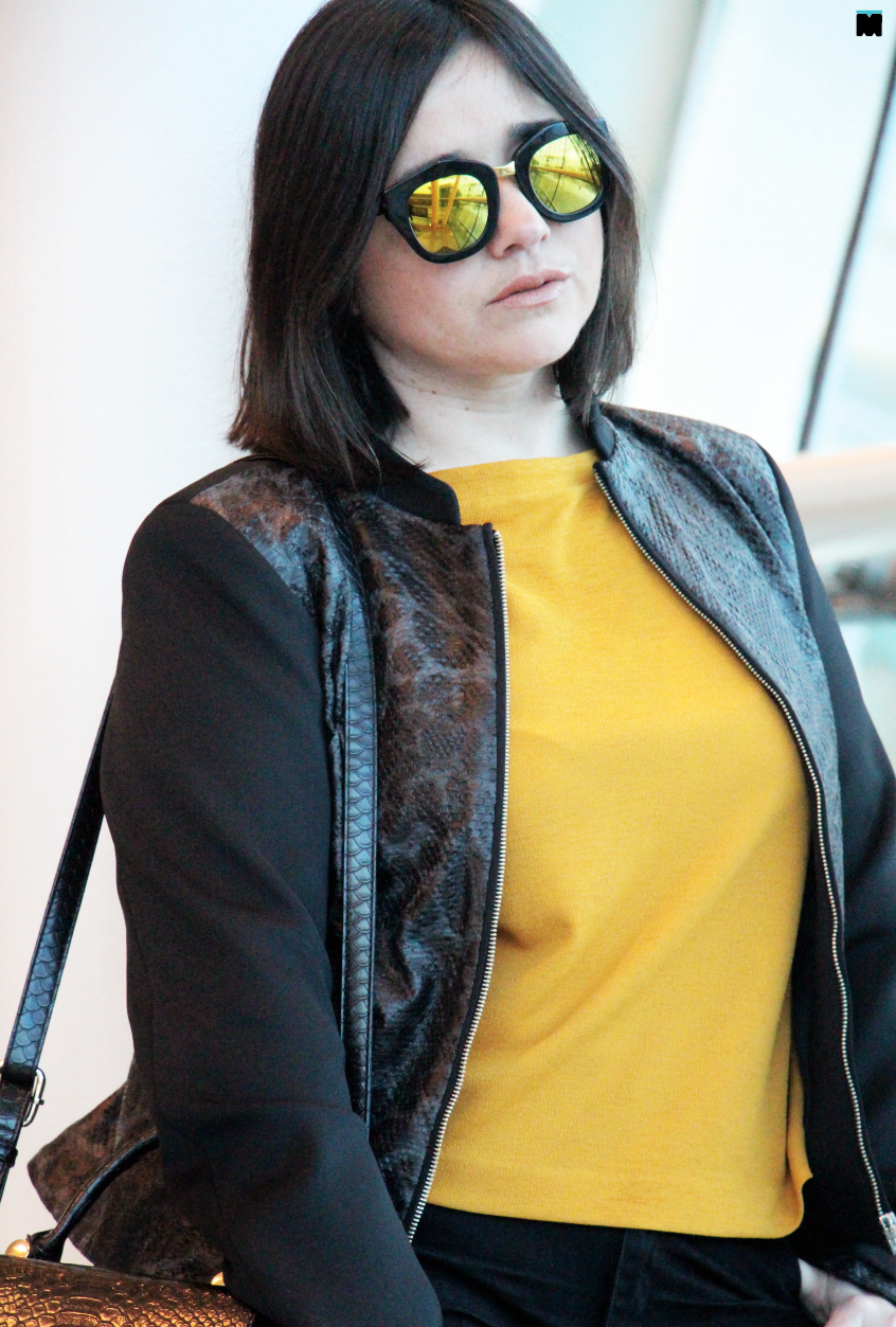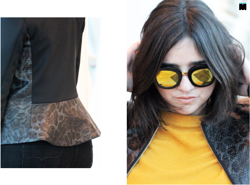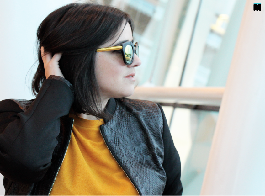 Tal como não faltam combinações! Os jeans ficam bem com tanta coisa... Que o melhor até seria dizer com o que não fica. Na minha opinião, são perfeitos para apostar em algo casual chic e é isso mesmo que sugiro. Escolhi a jaqueta que comprei nestes saldos e que falei aqui, uma camisola curta, uns saltos altos finos e uns óculos se sol Spektre com lentes da mesma cor da camisola, que pode encontrar na Óptica Médica Rogério, para finalizar o visual. Tão simples, não é?