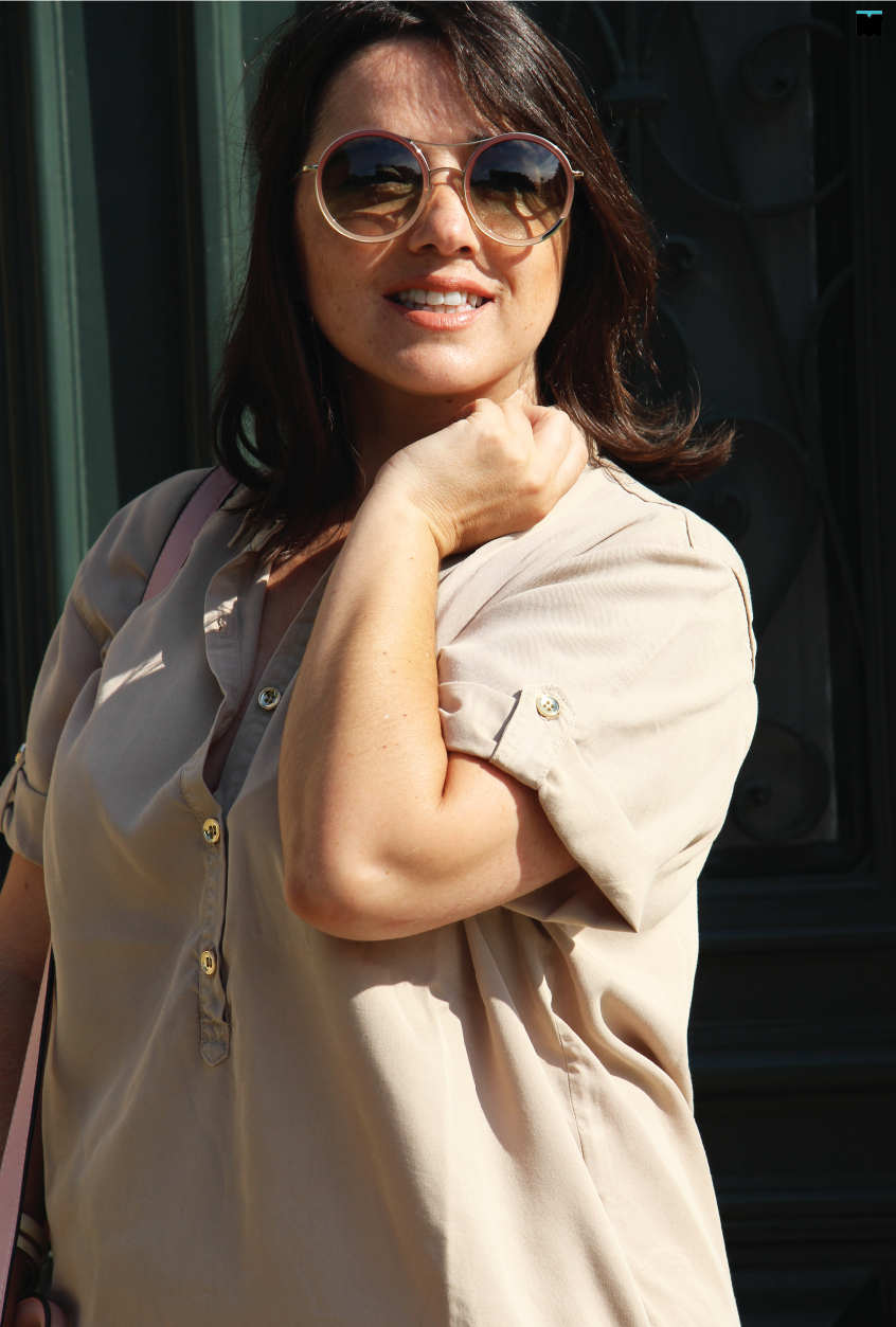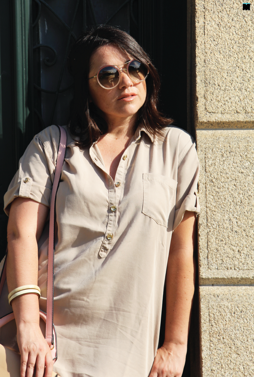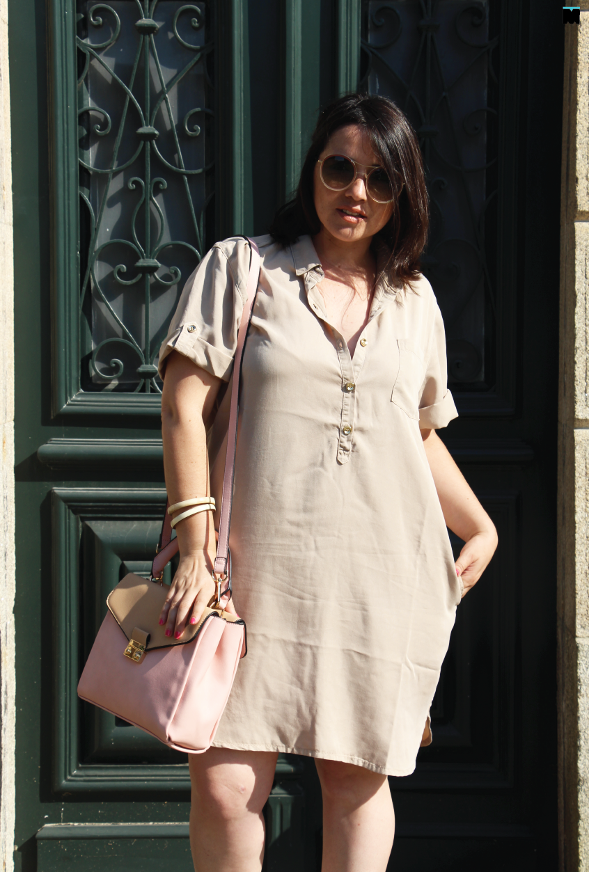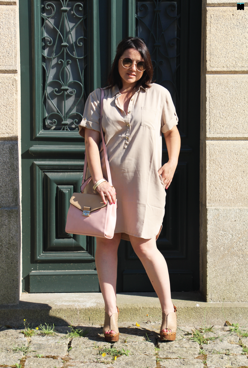 Tão simples assim. Um ou outro! Na realidade, não tem muito que saber e a oferta é bem alargada. Este vestido, por exemplo, que vos trago hoje (e que já mostrei aqui em azul denim) é perfeito! Embora seja, praticamente, do mesmo tom da minha pele, é solto, disfarça as minhas gordurinhas e torna a silhueta mais longa, principalmente, se combinar com calçado alto da mesma cor. Este último truque, então, é infalível! Como não gostar desta cor?