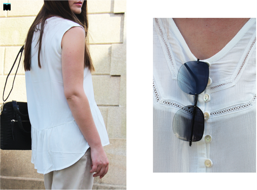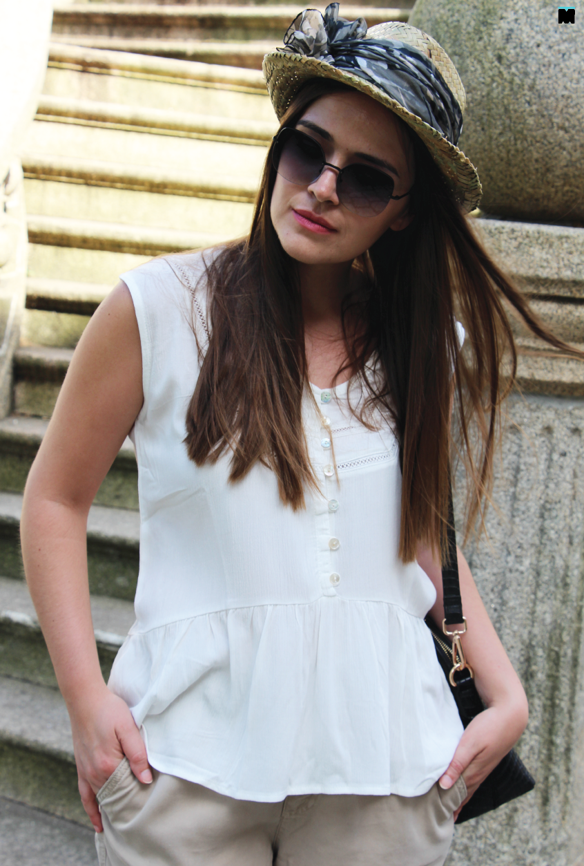 Tal como a minha irmã (ver aqui), faz-me uma certa confusão quando vou na rua e vejo alguém com leggings da cor da pele. Fico sempre na dúvida… Estará nua? “Ai, não pode!” Penso. Olho melhor. Sinto-me aliviada e, ao mesmo tempo, horrorizada. Não consigo tirar da cabeça esse pensamento… O resultado é um verdadeiro pânico por este tipo de tonalidade, que durou longos anos. Era! Este ano surgiram tantos tons diferentes, inspirados nas várias cores de pele, que decidi perder o medo e dar-lhes uma oportunidade. No entanto, hoje, optei por desafiar-me e escolher um tom mais próximo da minha pele para provar (a mim mesma) que é possível usar calças beges (no mesmo modelo que usei aqui), sem parecer que as deixamos em casa… E o resultado não podia ser mais fresco, confortável e relaxado, tal como eu gosto!