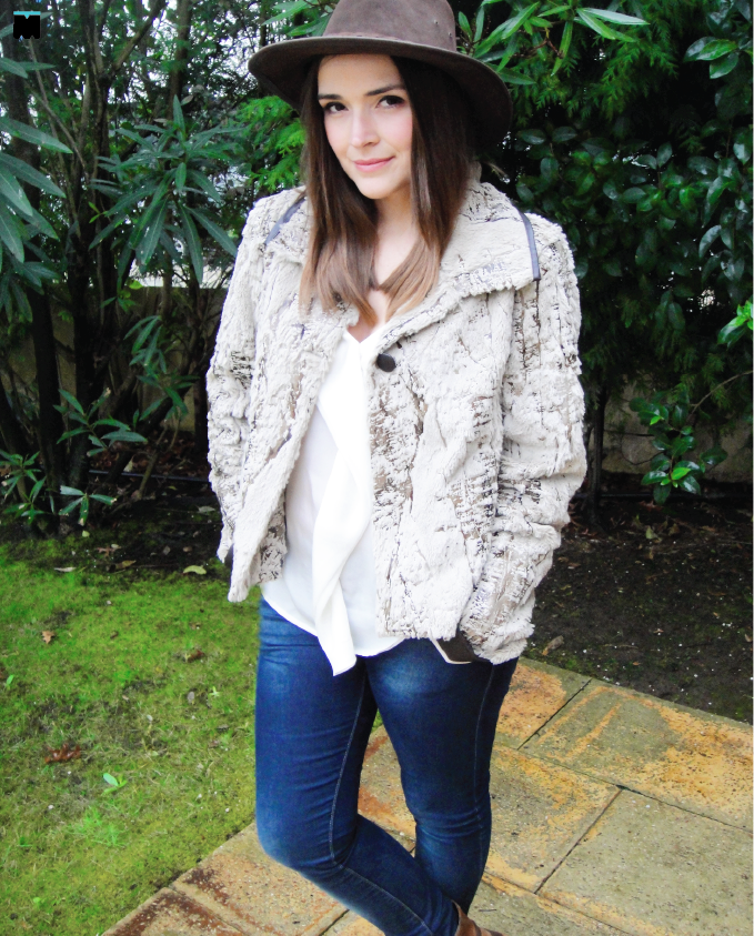 Sabe aquele casaco maravilhoso de pêlo que usou nas festas de fim de ano?!? Não está guardado no armário, pois não?!? É o ideal para conjugar com os seus jeans e dar um ar mais glamoroso ao visual. Para o efeito, aproveitei para usar um chapéu em pele, feito à mão, que comprei numa feira de artesanato e que, nem sempre, tenho oportunidade de o exibir. E aqui fica mais uma sugestão, dentro de 1001 possibilidades, para usar as suas calças de ganga de forma diferente.