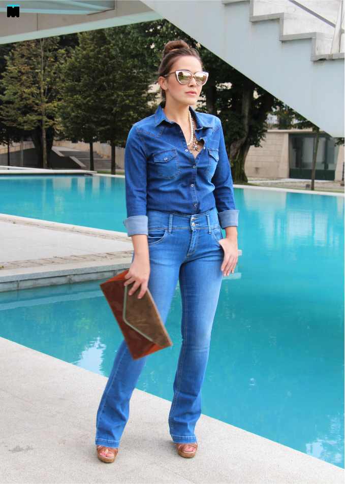 Estou chateada com o Verão! Está uma pessoa de férias para isto?! Uma coisa é certa... Bem preciso deste descanso! E, para ser sincera, o Outono é a minha estação favorita, mas não estava com pressa. A ganga é perfeita para estas temperaturas médias e estas calças em saldos, não podiam ser melhor aquisição para os dias que se aproximam. A minha maninha já as mostrou aqui e eu, para provar que a moda pode e deve ser para todas as mulheres, independentemente, do seu tamanho (basta procurar no sítio certo), trago-as outra vez! Ao contrário dela, apostei num visual monocromático em ganga que podem recriar seguindo as seguintes dicas.
