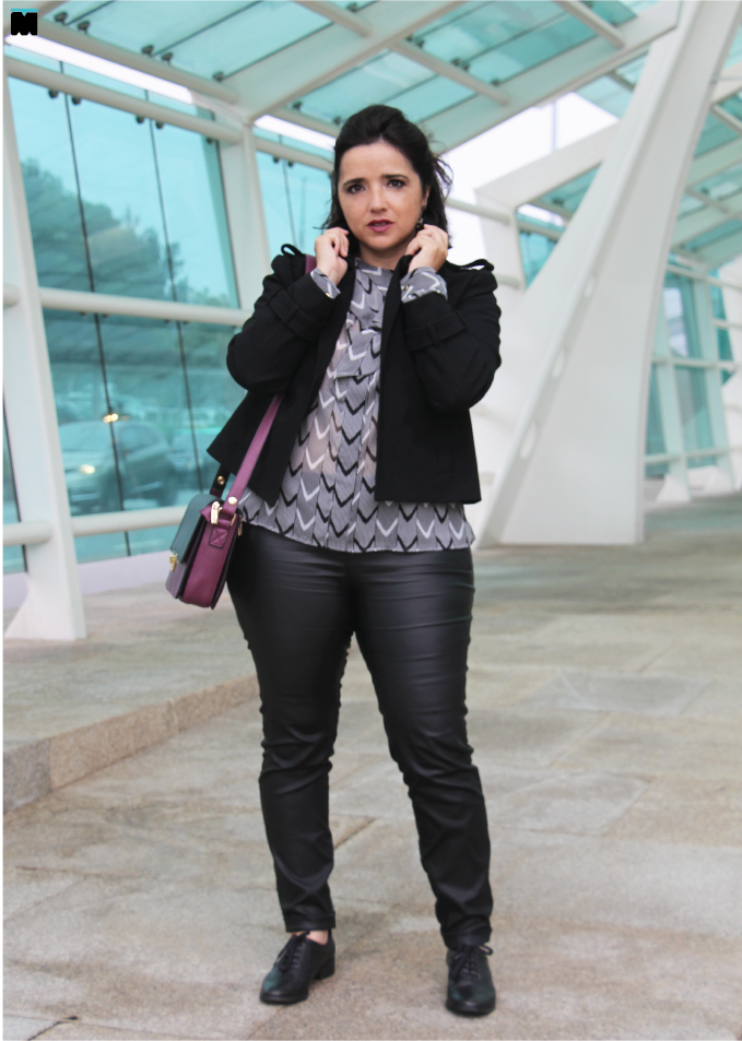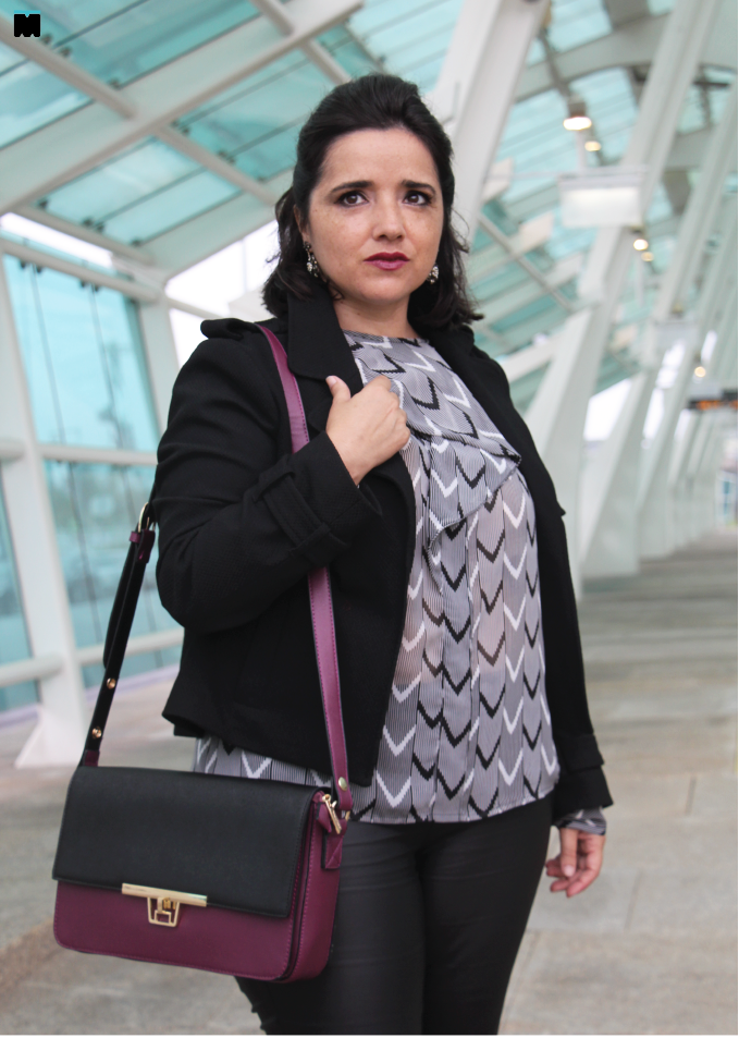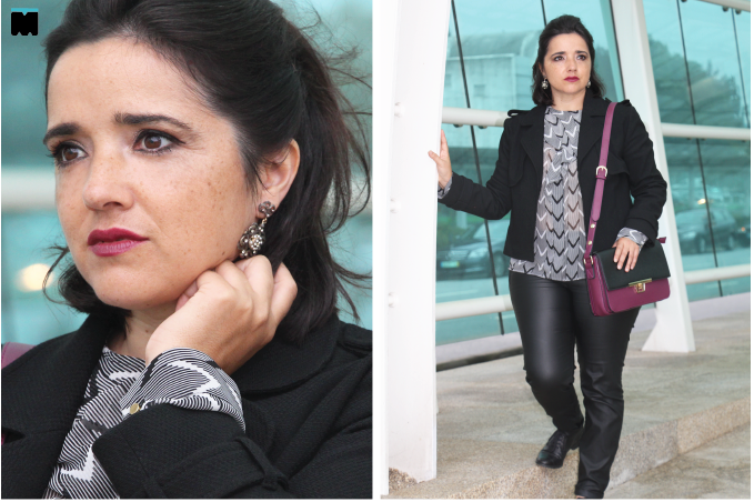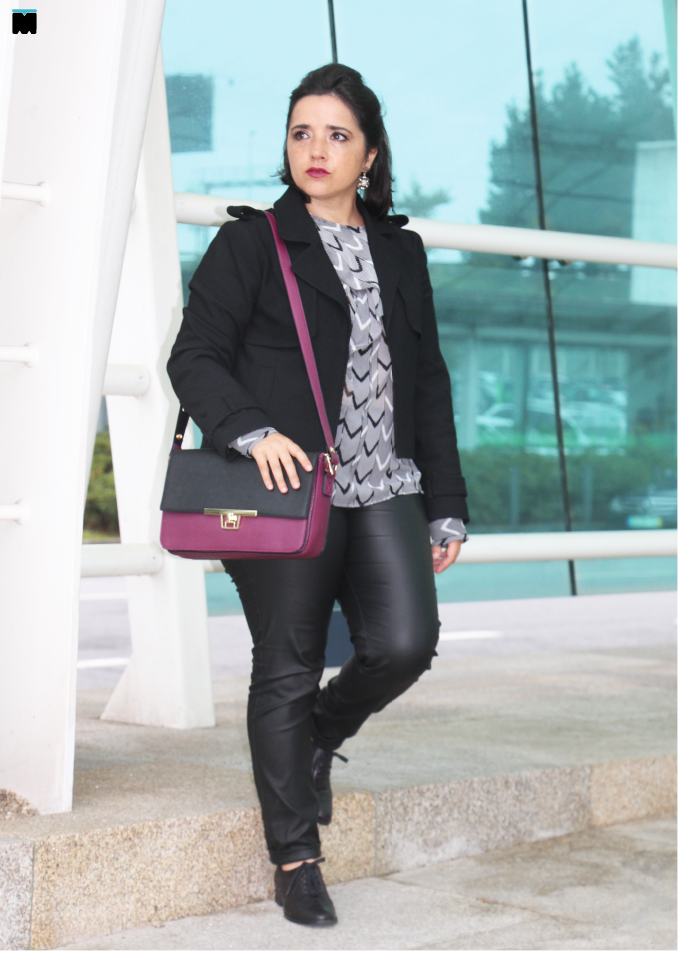 Confesso que foi difícil, se foi... Recebi tantas camisas com padrões geométricos, igualmente maravilhosos, que nem sabia por qual começar! Optei por aquele que é a minha cara. Preto e branco. Tão simples quanto isso. Eu sei que disse que ia mostrar mais cor e, para ser justa, até nisso pensei! Ok! Não é uma peça de roupa. É uma carteira, mas conta. E esta é a minha dica para as meninas que se sentem confortáveis no preto e não pensam usar cor tão cedo. Não precisam. Mais vale tarde do que nunca. No entanto, podem fazê-lo progressivamente, acrescentando algum constraste através de acessórios como malas, lenços ou colares, mesmo com padrões à mistura. Que loucura! Talvez... mas são estes pormenores que, no final, fazem toda a diferença, não concordam?