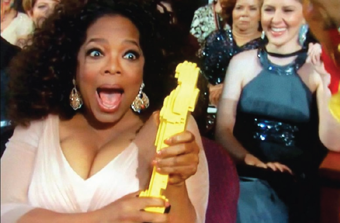 Quanto mais penso, menos acho a passadeira vermelha mágica, glamorosa e perfeita, mas o vestido da Oprah Winfrey é isso e tudo mais. A forma como a suavidade do vestido contrasta com a sua personalidade forte emocionou-me. E moda também é isto... Transmitir sentimentos.