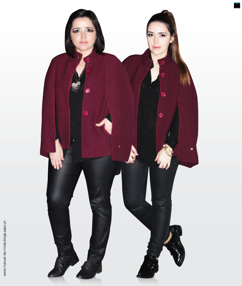 Tenho sentido, na loja, uma maior adesão à capa. Ainda bem! Até, porque, falámos tanto dela aqui e aqui. Fico mesmo contente que as minhas clientes tenham percebido que a capa não precisa de engordar, muito pelo contrário, desde que seja escolhida de acordo com a sua silhueta. Sabe que existem muitas capas diferentes, não sabe? Se a que experimentou não fica bem, experimente outra e outra, até encontrar aquela que seja perfeita. Esta, por exemplo, devido aos cortes para o braço, cria a ilusão de cintura fina. Dica: Caso pretenda um efeito ainda mais redutor, opte por tons escuros e monocromáticos para a primeira e segunda peça.