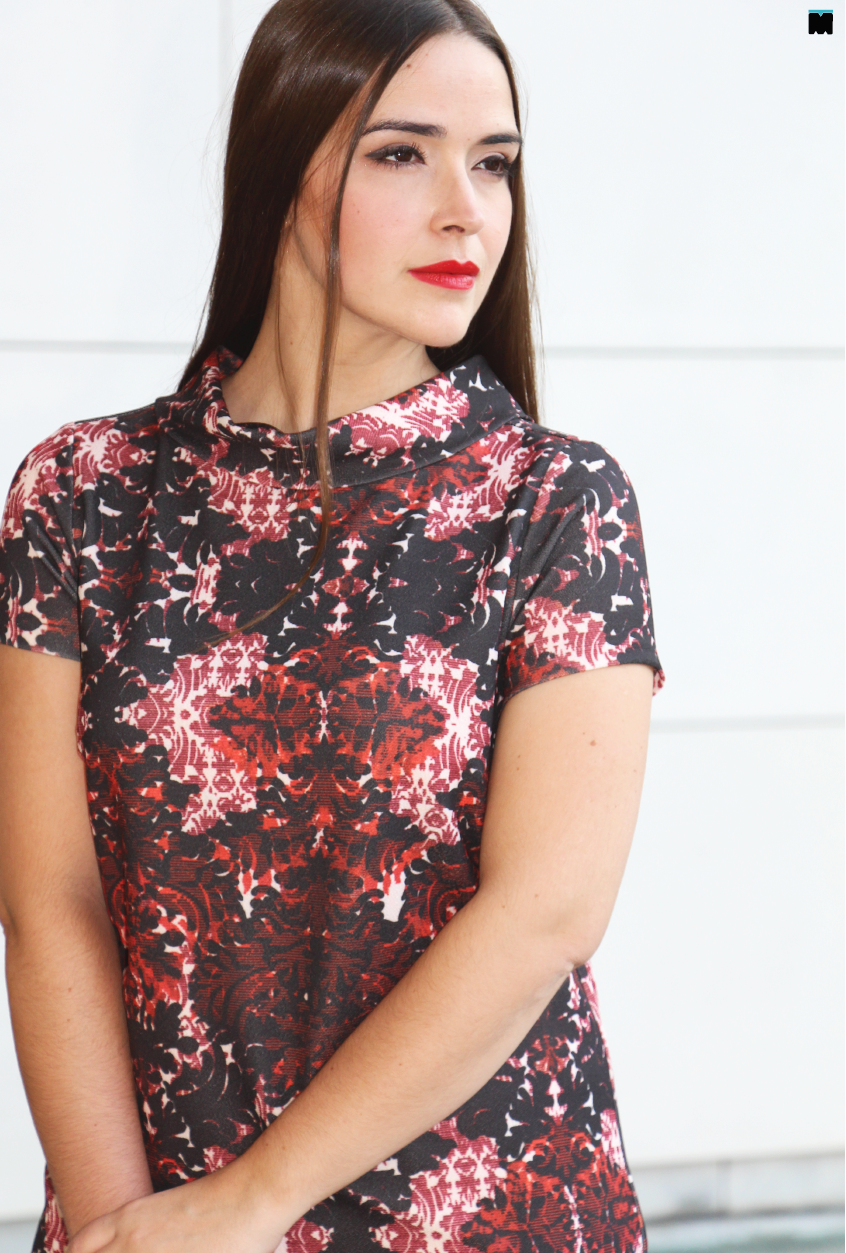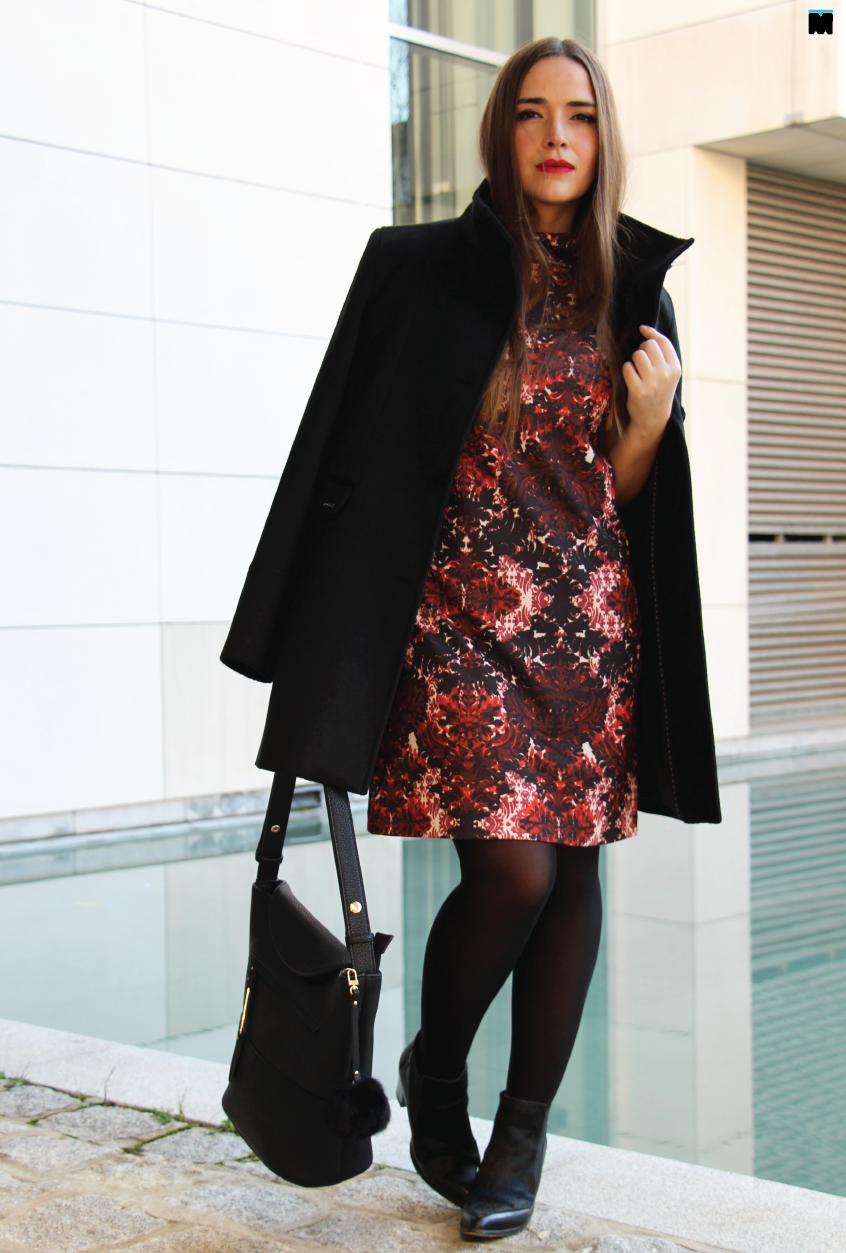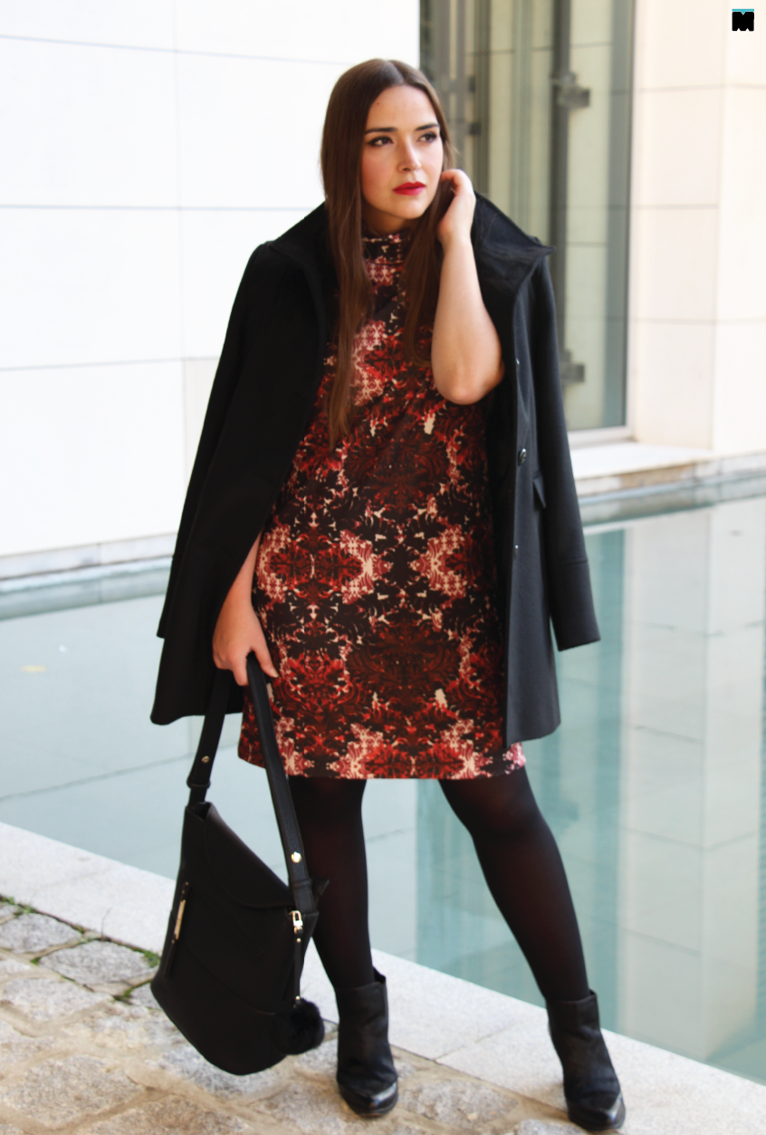 O brocado ou o cortinado da avó, como lhe chamo, é uma das minhas texturas favoritas, porque adapta-se facilmente a vários contextos, infelizmente não às minhas coxas. Como assim? Um dia arrisquei numa saia bem gira em brocado e pensei que ia usá-la imeeeeenso, só que não. Porquê? Porque o tecido não tem ponta de elastano. Era tão dificil sentar-me e estar sentada, que as minhas coxas gritavam de angústia, pobrezitas! Aprendi da pior maneira que brocados só em cortinas ou peças de roupa soltas, até ao dia que, finalmente, a minha irmã recebeu este vestido na loja. Devem estar a pensar que sou maluca e que um bocadinho de coerência até ficava bem. Certo. Ultimamente não digo coisa com coisa, tenho que admitir, mas não é o caso, porque o padrão deste vestido, na realidade, é impresso. E esta, hein? Tem toda a beleza de um brocado original, mas todas as vantagens de um tecido que, verdade seja dita é, extraordinariamente, confortável. Se ainda não tem nada para usar no Natal, este vestido é uma excelente opção. Pode comer à vontade, que ele disfarça tudinho! Ai, eu penso em tudo. Quem não fica a rebolar nas festas?! Eu fico!