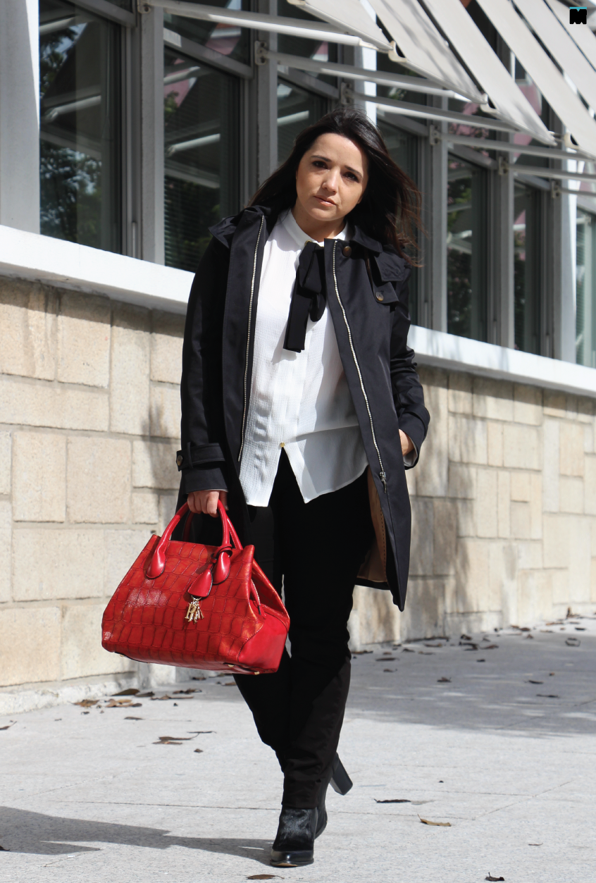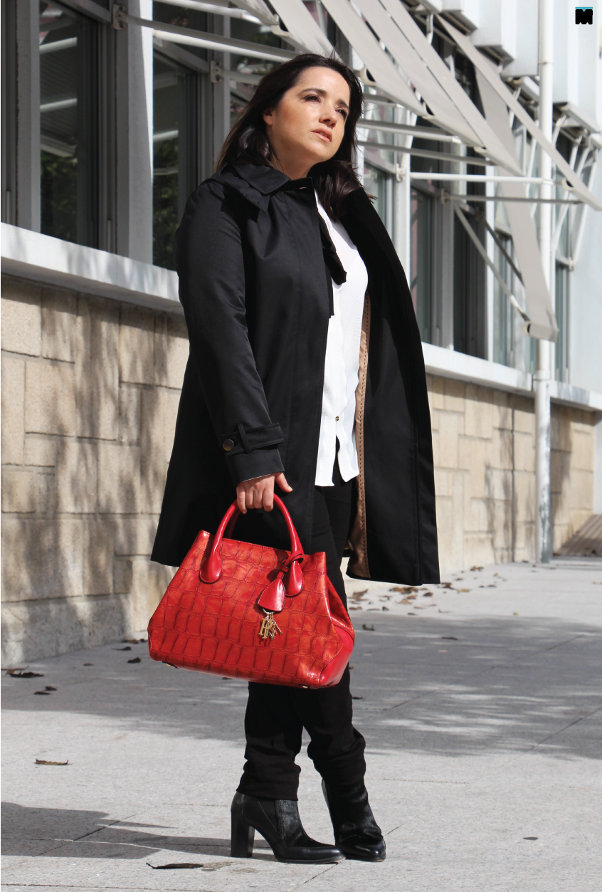 Até aqui tudo muito bem. O problema é se, tal como eu, entre casa-carro, carro-emprego e vice-versa, anda pouquíssimo no exterior. Para quê investir numa peça que não se torna tão confortável para usar no interior, como os blazers, capas, fazendas ou malhas? Só porque dizem que sim? Era o que faltava! Por favor... Isso é consigo. Só investe naquilo que quiser, mas tudo muda de figura quando gostamos muito de algo, não é? A lógica desaparece e ficamos a pensar que a vida não é só trabalho. Pois... Foi o que me aconteceu quando vi esta trench tão diferente e, ainda por cima, em preto. Eu adoro preto! Como resistir?