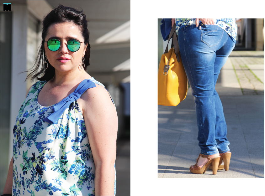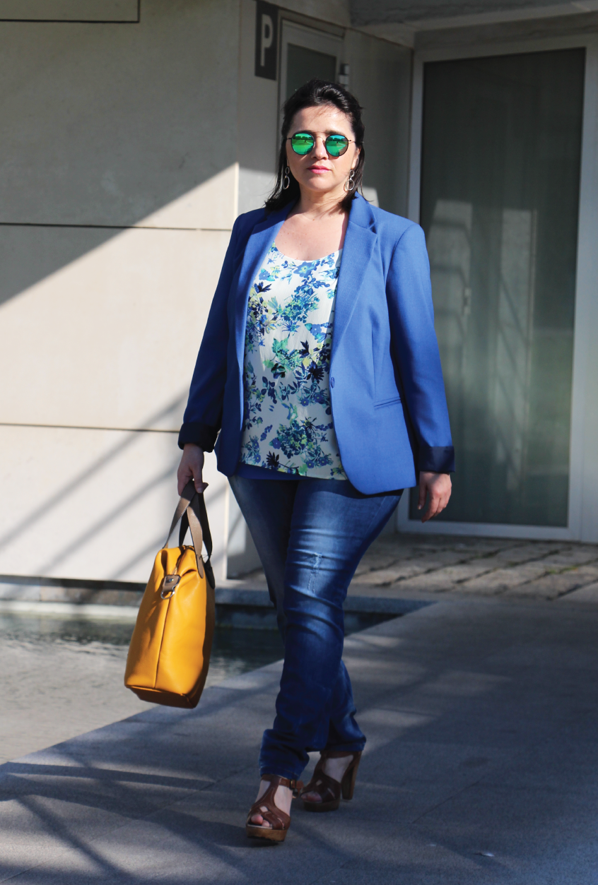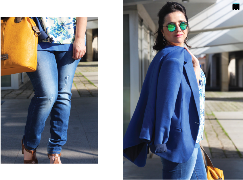 Sempre que a Primavera regressa, espalha flores por todo o lado. E quando digo todo o lado, é mesmo todo o lado! Nos jardins, nas ruas, por casa e até pelas roupas. Adoro! Quem não gosta de flores?! Na roupa, muitas meninas não gostam. Eu confesso que não gosto de qualquer padrão floral, até porque nem todos me favorecem, mas este que vos trago hoje encantou-me. Não é particularmente feminino e romântico, pelo contrário! É fresco, como o nosso mar. Adoro como combina com uns jeans rasgados e um blazer para dar um toque mais elegante. Quem disse que os visuais com padrões florais não podem ser práticos?