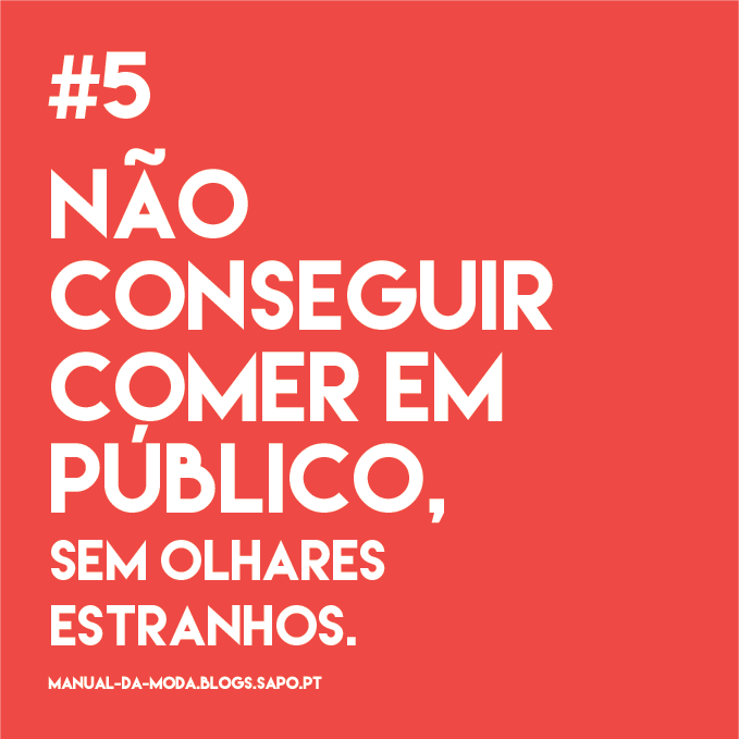 3. Não comer. "Não comes? Estás assim de ar e vento?! Acredito! Deves ser das que come às escondidas, sua balofa!"