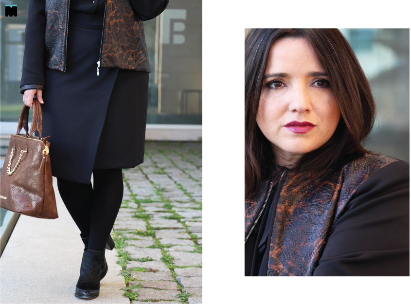 Se quiserem ver-me a correr à velocidade da luz e, vejam bem que, correr não é mesmo o meu forte, é pôr um réptil à minha frente. Que medo! É eles lá e eu cá. Bem longe! O mesmo já não posso dizer deste casaco, que assim que o vi, não o larguei. Claro que é só uma imitação! Não conseguiria usar nada sabendo que pertenceu a um bicho rastejante com dentes. Credo! Ainda gostei mais, quando o vesti! É perfeito para tirar partido de qualquer silhueta feminina, magra ou gordinha e está disponível na loja online Manual da Moda, até ao tamanho G. Não é fantástico? Fica espectacular com calças rasgadas ou algo mais feminino e elegante, como esta saia pencil assimétrica. Se ainda não tem nada com este tipo de textura, esta é uma opção que não cansará tanto. E sabe do que não se cansará mesmo? De se olhar ao espelho e ver como está bonita!