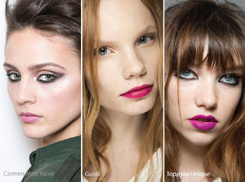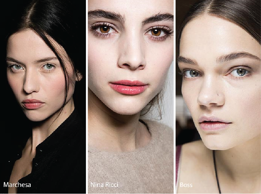 Esta é, sem dúvida, a tendência predominante, como já se viu nos cabelos. Numa estação em que mais é mais, a maquilhagem aparenta menos. As sobrancelhas largas, selvagens e escuras. Os olhos nude, ou quase nude, em tons terra, mais escuros, para definir, suavemente, sombras estratégicas. A pele radiante. Os lábios nude. O segredo é parecer que não tem maquilhagem, quando tem! Aposte em produtos adequados ao seu tipo e tom de pele, valorizando-a. A paleta de nudes é vastíssima e excelente para dar forma ao seu rosto e olhos, sem o carregar. Para além disso, é das maquilhagens mais versáteis, porque combina com vários tons de batom, passando de um look diurno a nocturno, em segundos.