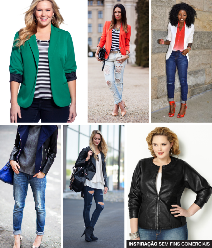 Se pretende usar os jeans para o trabalho ou outra ocasião especial, numa versão mais elegante ou casual chic, conjugue com um casaco de alfaiate tipo o blazer. Se, por outro lado, pretende acentuar o lado descontraído das calças de ganga, adicione uma dose de rebeldia ao visual, conjugando com uma jaqueta em pele.