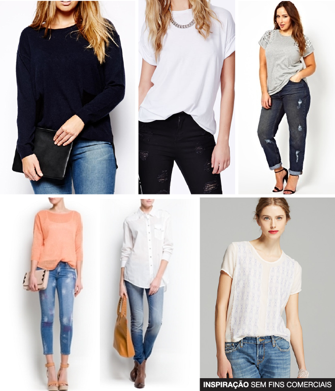 Sim, e por baixo do casaco? Perguntam. E perguntam muito bem. Pessoalmente e, uma vez que as gangas são lisas, use blusas e tops coloridos com estampados, de forma a cortar a monotonia e adicionar alguma diversão e jovialidade ao visual. Se não gostar, de forma alguma, de estampados (uma pena), opte por cores claras. Caso prefira skinny jeans, aposte em blusas mais largas e fluídas e, ao contrário, em tops justos caso use jeans de corte clássico ou regular. E aquele top lindo com renda, brilhos e transparências? Use à noite, dance, divirta-se muito e arrase!