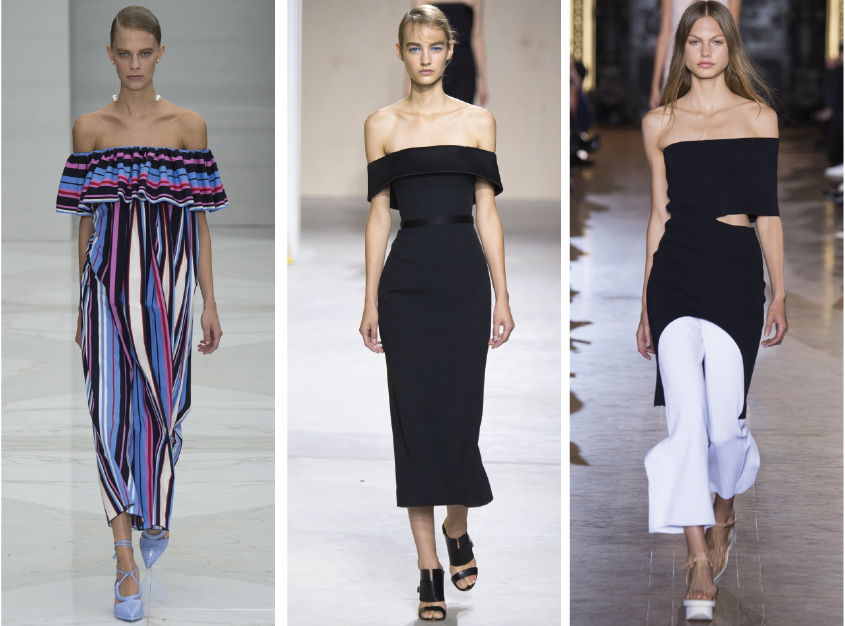 Esta é uma das variações dos ombros à mostra que será tendência para a PV16. Surgiu em vários desfiles e, com certeza, surgirá nas ruas, também.