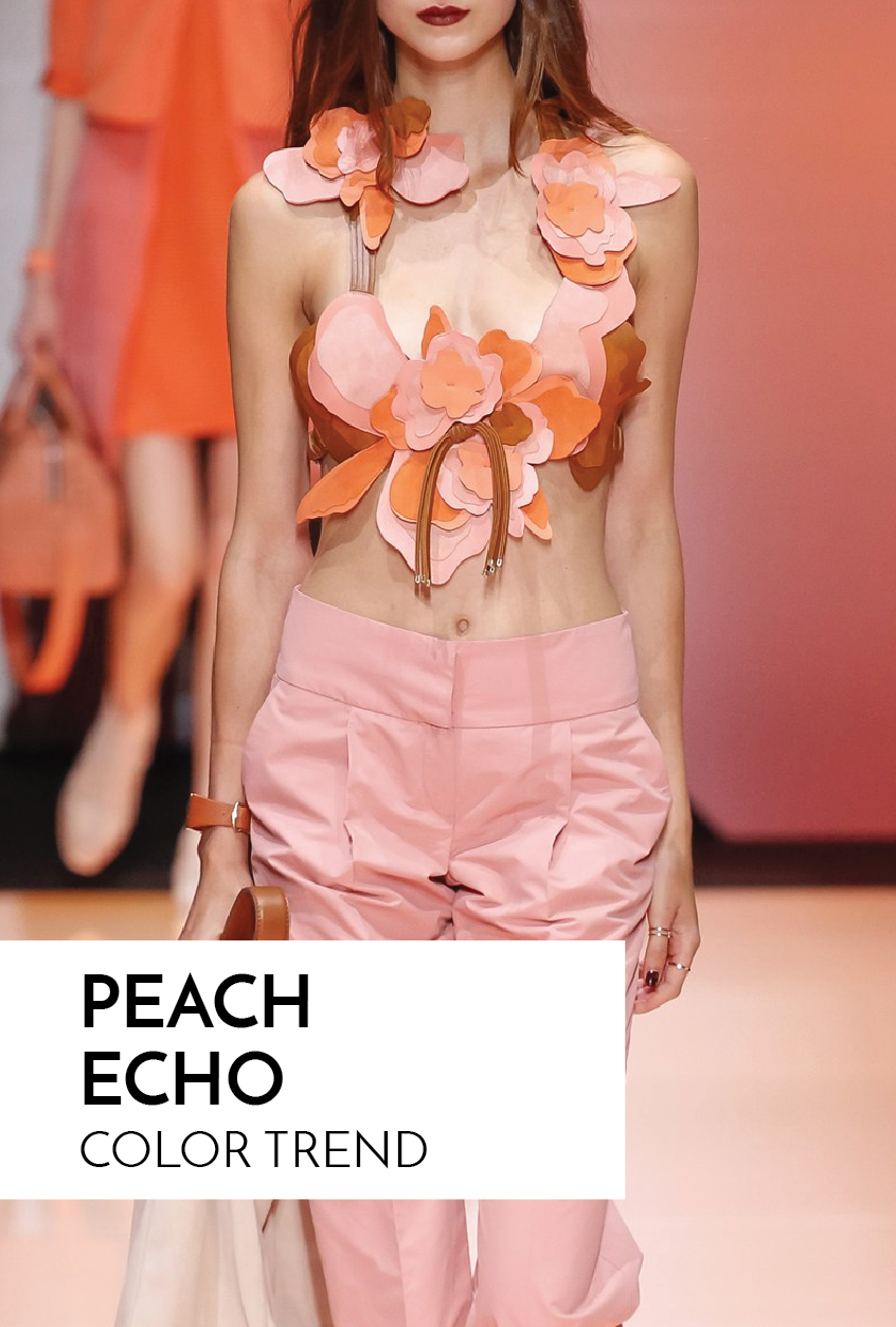 Esta semana vamos falar de uma das nossas cores favoritas para esta estação, a cor “peach echo” (eco de pêssego). É quente. Terrosa. Doce. E, embora tenha o nome de uma fruta é, praticamente, um nude. Suave. Elegante.
