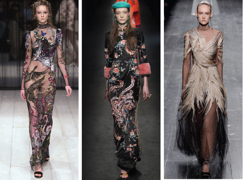 Da esquerda para a direita: Alexander McQueen, Gucci, Valentino.
