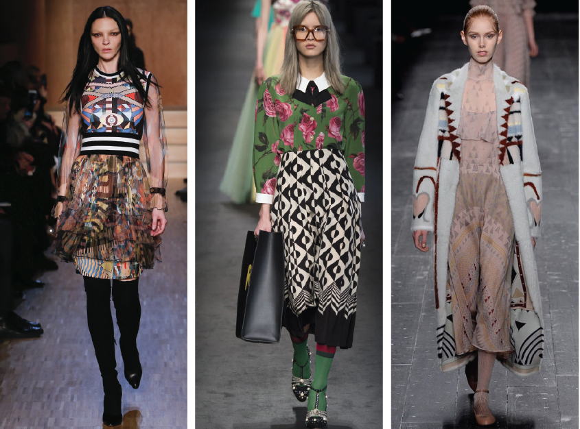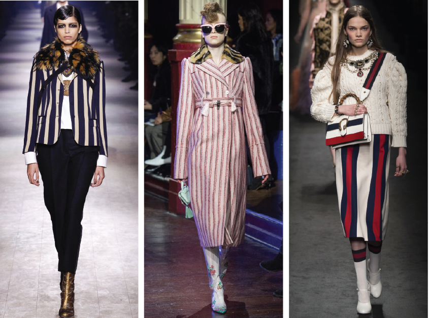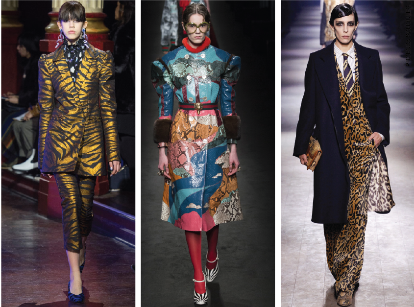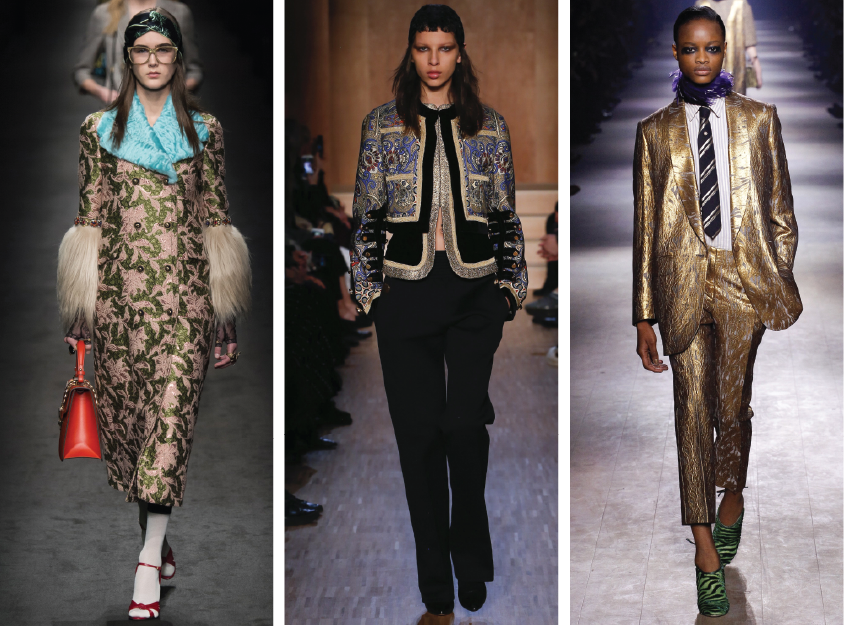 Da esquerda para a direita: Kenzo, Gucci, Dries Van Noten.
